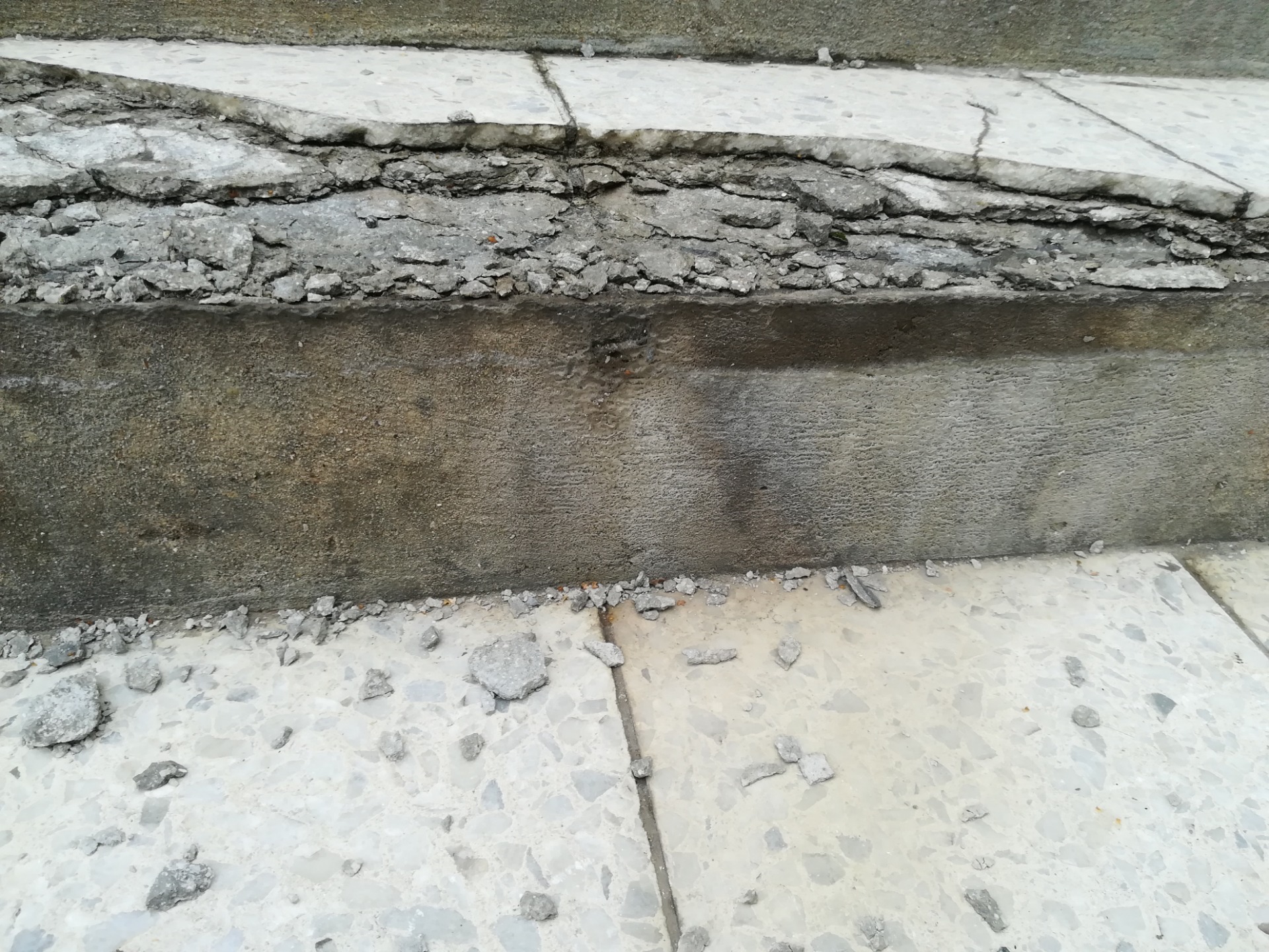 Asi ste sa už stretli, že dlažba v exteriéry praskla alebo ako nižšie vidíme už aj betón mení svoju konzistenciu na sypkú :-).